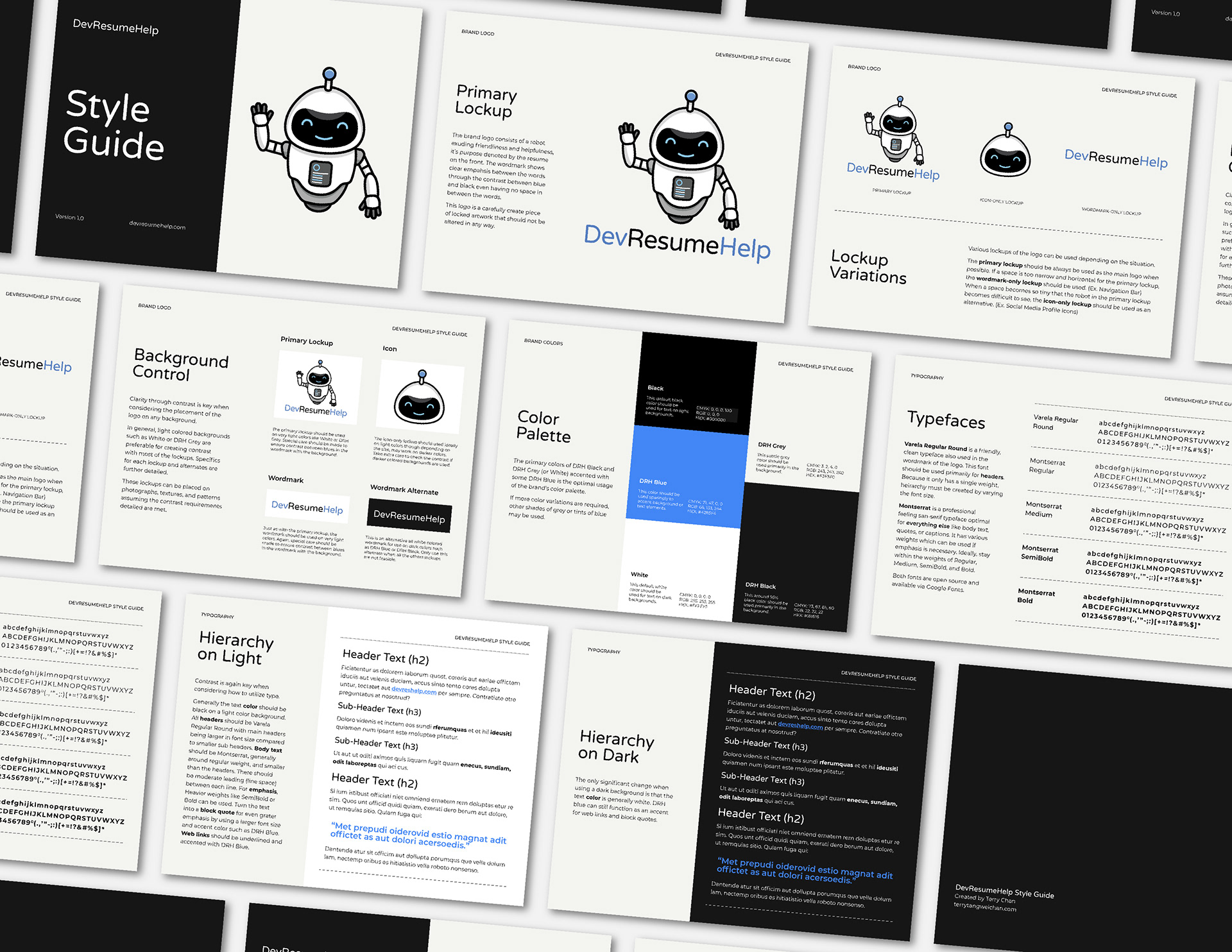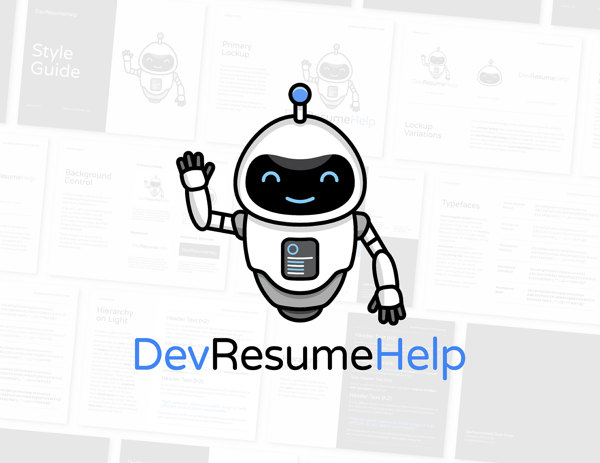 Logo and branding design for DevResumeHelp, an online company which assists entry-level developers with their resume building.